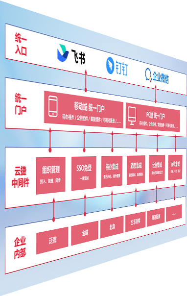 对协作平台提供支持服务,,,,支持企业应用与协作平台对接,,包含组织同步、、、消息集成、、待办集成等。。。。支持目前主流的协作平台:钉钉、、、、企微和飞书。。。。
